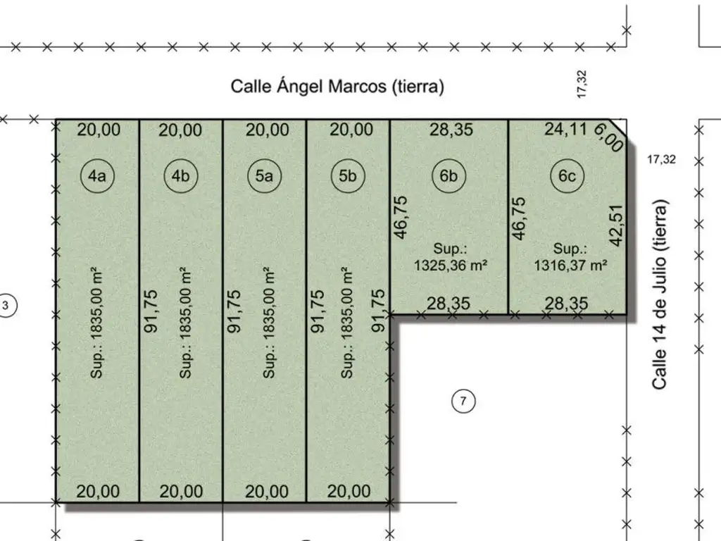 Lotes de 1300 a 1800mts sobre calle Ángel Marcos, en proximidad al Autodromo. Servicios de agua y luz