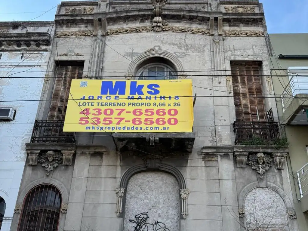 Lote en venta con fracción de 8,66 x 25 Mts. Superficie vendible estimada: 1.217 m² + 5 cocheras en planta baja. Dirección exacta: Gral. Hornos 1524