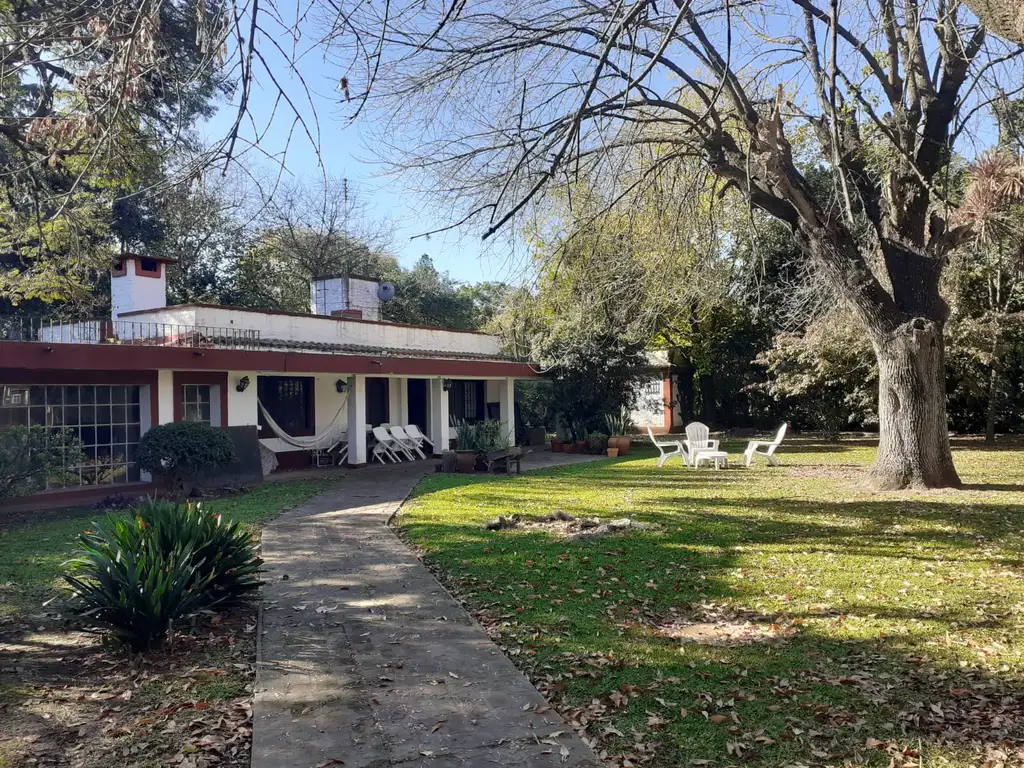 Casa estilo campo a refaccionar. Importante living y comedor, cuatro dormitorios y escritorio, baño principal y toilette. Amplio parque y pileta. Garage y cabina para el motor del agua. Tiene actualizada la mensura; está en condiciones de escriturarse de inmediato.