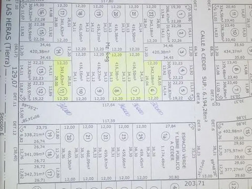 GELVES 1300:Loteo entre las calles Gelves y Las Heras. Cuatro lotes a la venta. Manzana 6 ag: Lote 6: 342 m 2 , Lote 7 y 8: 416 m 2, Lote 11: 341 m 2.