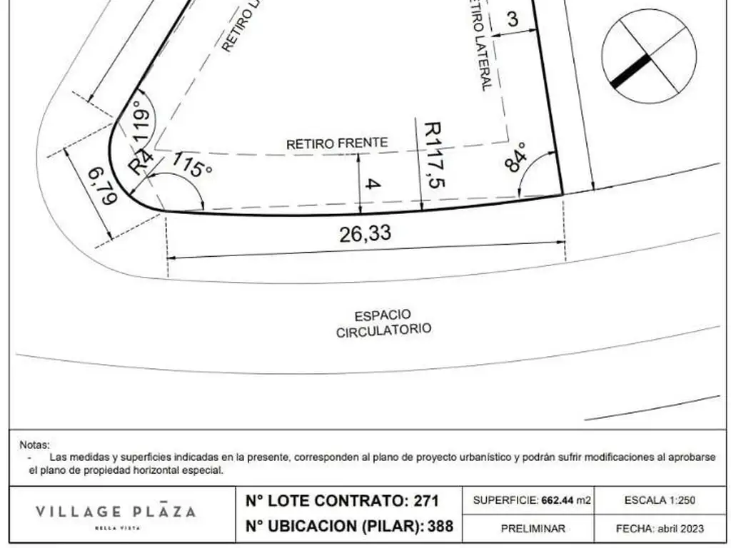 Barrio Village PLaza lote central de 662mts²