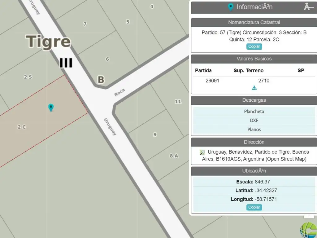 Son dos lotes, una escritura, según el siguiente detalle: Partido: 57 (Tigre), Circunscripción: 3, Sección: B, Quinta: 12.