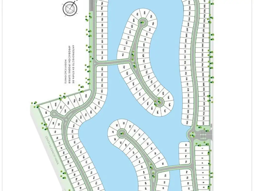 Su diseño de 276 lotes se proyecta en torno de una laguna de 14 ha, con islas y puentes.