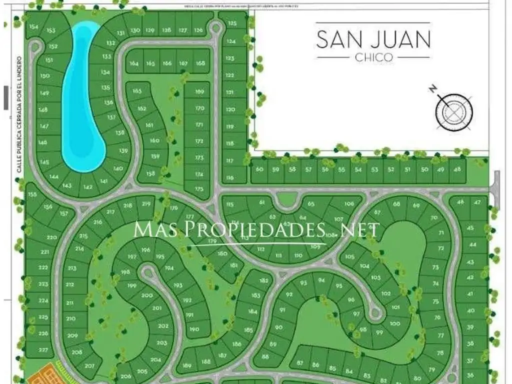 Ubicado en el corazón de Hudson, se encuentra emplazado en un predio de 26 hectáreas de una tierra única. Se distingue por estar rodeado de prestigiosos barrios cerrados (Greenville, Abril CC, etc.) garantizando a sus habitantes una seguridad única en la zona. San Juan Chico consistirá en el desarrollo de un barrio de 227 lotes con dos canchas de tenis, una cancha de fútbol y salón de usos múltiples.