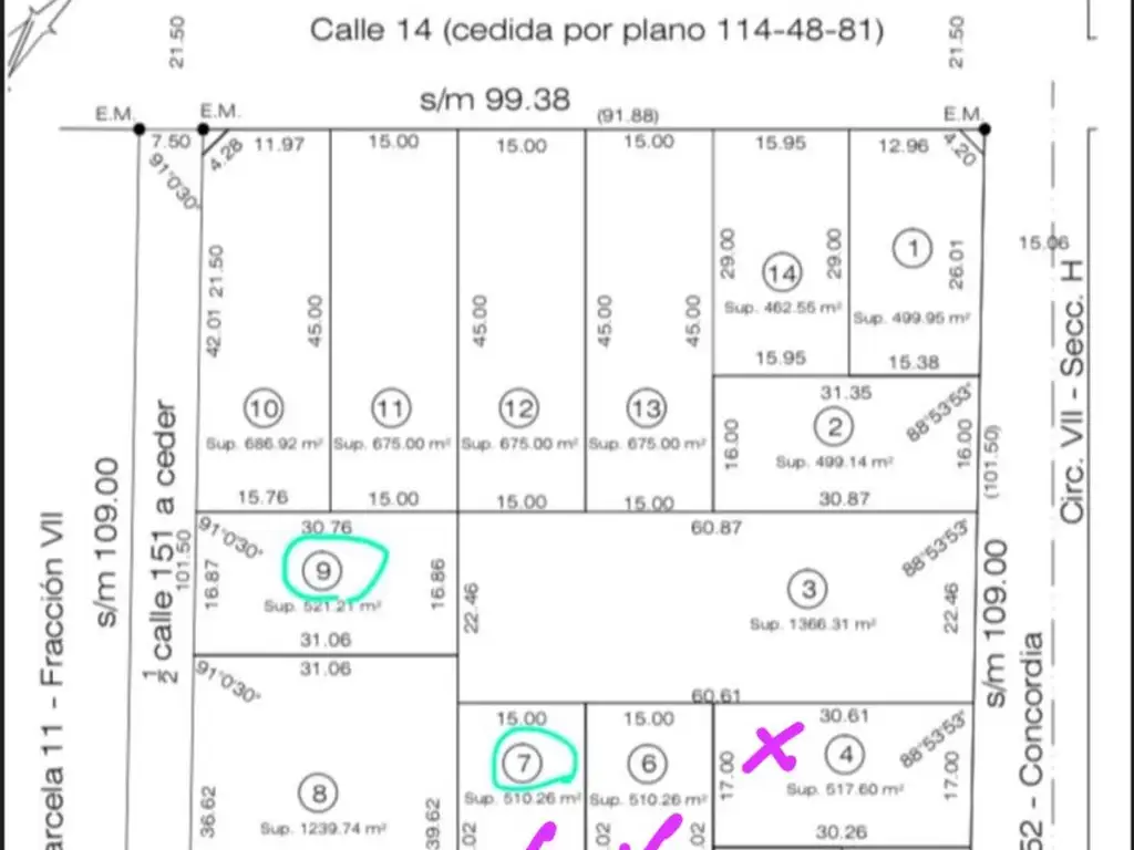 Long. Frente: 15 m