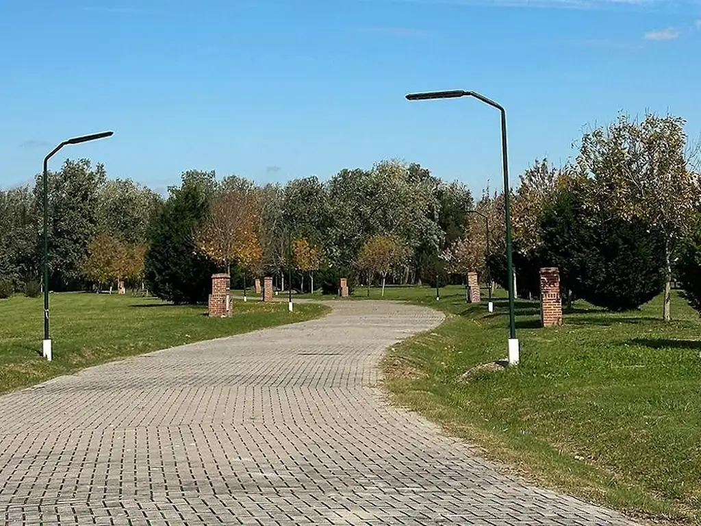 ésta urbanización tiene todos los servicios (seguridad 24 hs, agua corriente, cloacas, infraestructura eléctrica subterránea y calle de adoquines articulados.), facil acceso a rutas 6, 8 y 9.