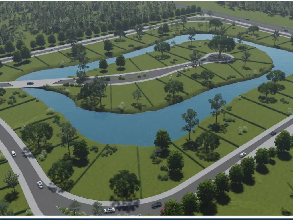 Una gran laguna que rodea a más de 40 lotes, ubicada desde el centro hacia la zona posterior del barrio.