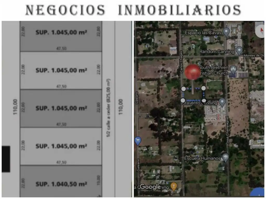 Lotes de 22 metros de frente por 47,50 metros de fondo cada uno