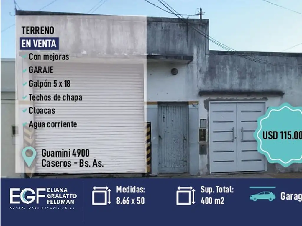 VENTA TERRENO GUAMINI 4900 8,66 X 50