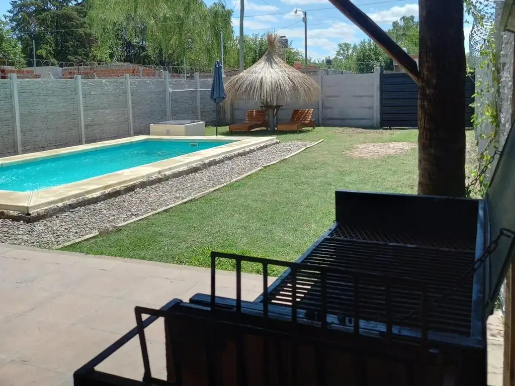 Cuenta con una piscina de fibra de vidrio de 7x3 metros, equipada con bomba, filtro y borde de cerámica térmica, ideal para disfrutar todo el verano.
