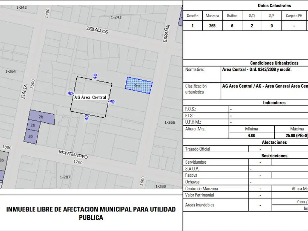 El inmueble no presenta ningún tipo de afectación/restricción del suelo.