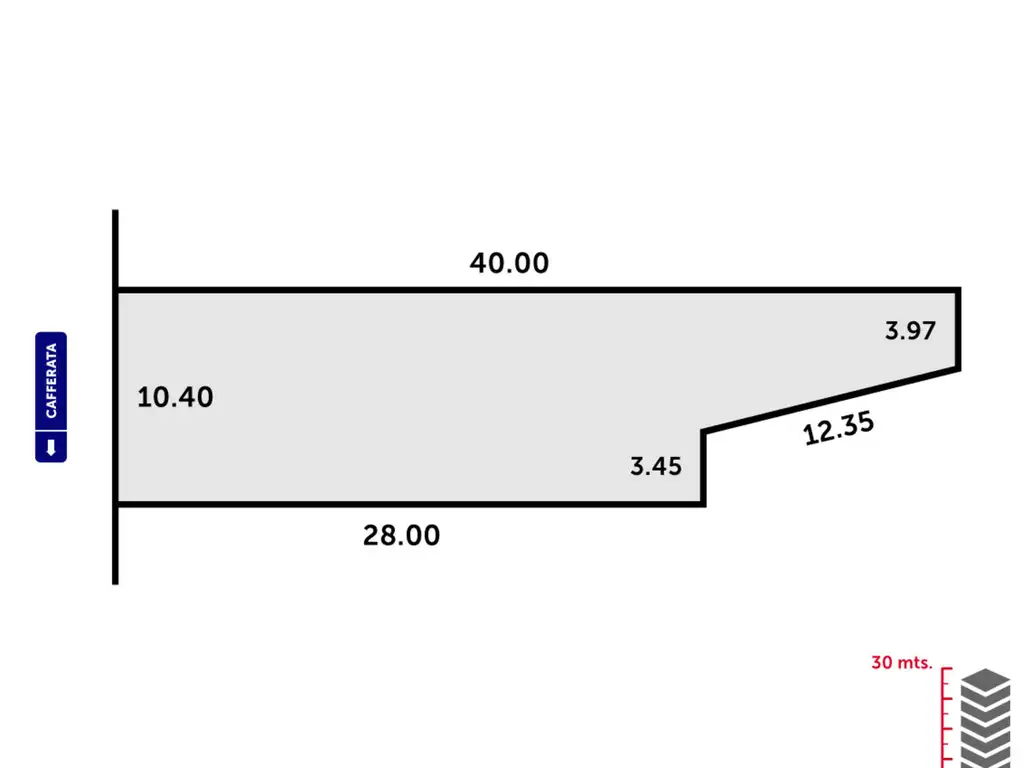 Lote ubicado en calle Cafferata entre Montevideo y Zeballos. Se compone de 10. 40 m de frente por 40 m de largo en su lado norte, y 28 m de largo en su lado sur. Es de forma irregular, formando una superficie aproximada de 357 m2. Corresponde al Corredor Urbano B, es decir que permite construir 30,5 m de altura (planta baja + 10 pisos).
