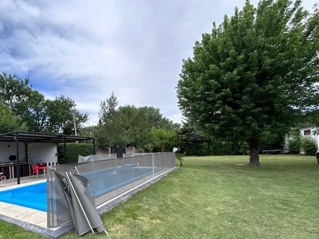 Características destacadas del terreno incluyen orientación norte, lo que representa una condición óptima para futuros proyectos arquitectónicos. El predio se encuentra parquizado y cuenta con infraestructura preexistente que agrega valor, como pileta de 3,40 x 8 metros con sistema de filtrado automático, quincho semicubierto, parrilla y portón corredizo automatizado.