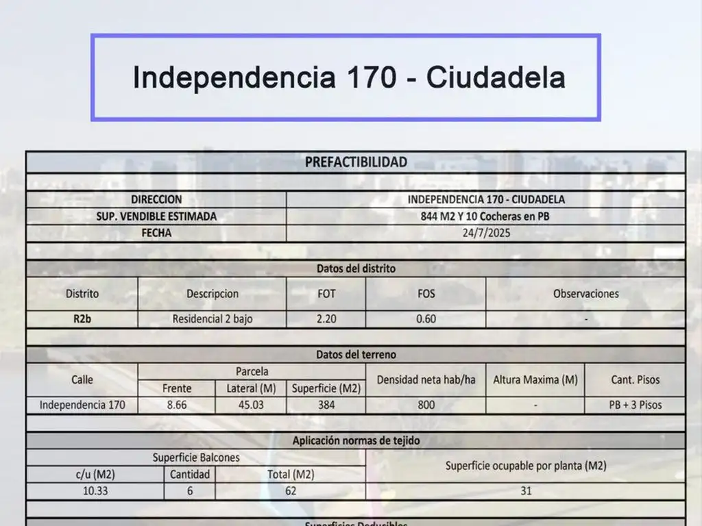 Venta Lote 8.66 x 45.03 Ciudadela 844m2 VENDIBLES