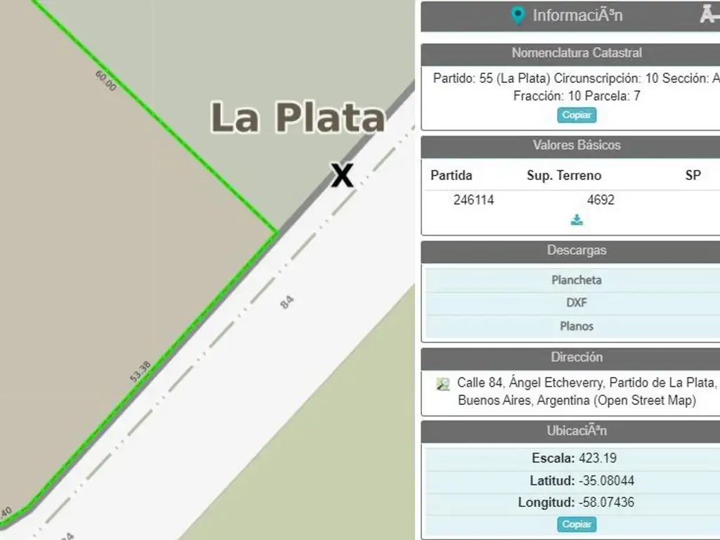 Partido de La Plata localidad Etcheverry , frente al Barrio Miralagos