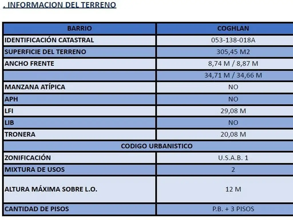 LOTE EN VENTA | COGHLAN - Capital Federal