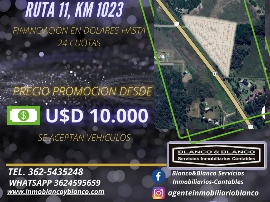 SE VENDE: LOTES SOBRE RUTA 11 KM 1023, PRECIO DE PROMOCIÓN DESDE U$D 10.000 ( FINANCIACION EN DOLARES)