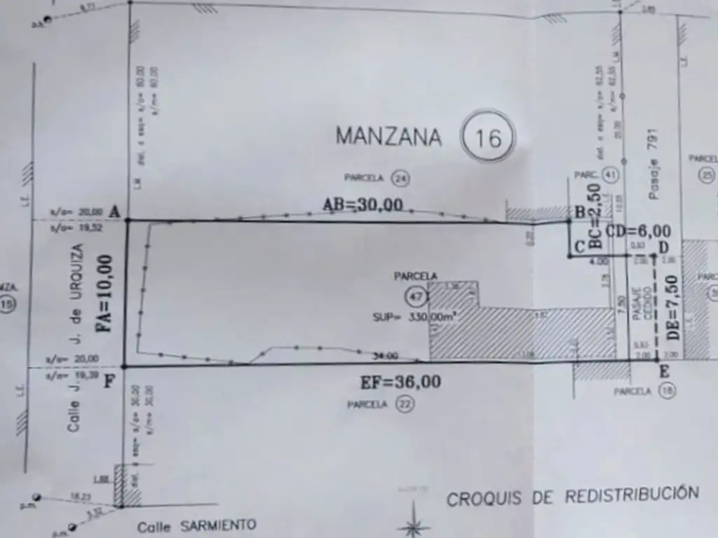 Terreno de 345 M2 ubicado en barrio Centro sobre calle Urquiza, con servicios disponibles.