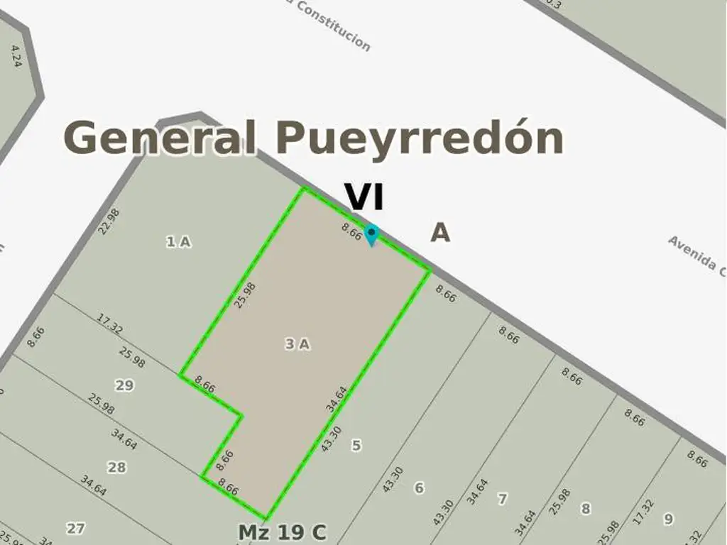 Frente: 17.32 mts - Fondo: 25.78 mts y 34.64 mts.
