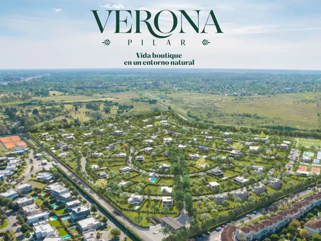 Verona Pilar es un nuevo barrio con excelente acceso desde Panamericana Ramal Pilar km 47, con cercanía a supermercados, colegios, gimnasios y comercios de diferentes rubros. Este mismo cuenta con: