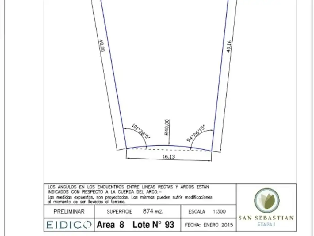 ¡Oportunidad única con FINANCIACION. Se vende lote en San Sebastián, Área 8. Con una superficie de 874 m2, este terreno es ideal para construir la casa de tus sueños. ¡No dejes pasar esta oportunidad por solo USD 13,000 + 12 cuotas de usd 500