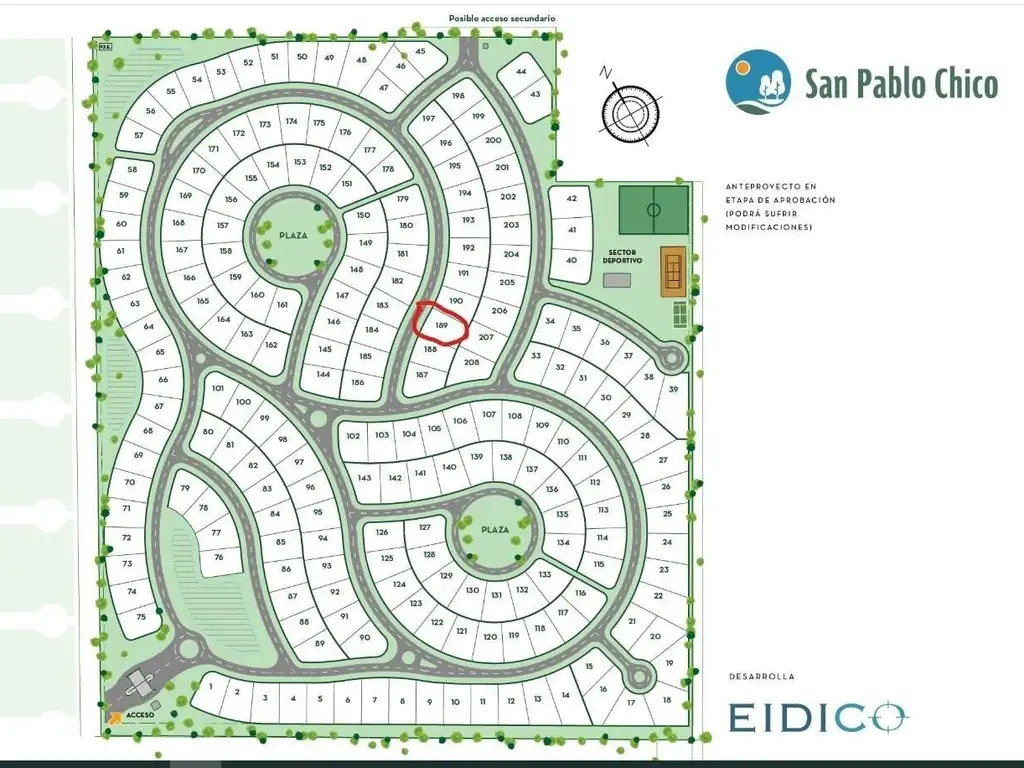 • Red vial (Asfalto): caminos internos con cordón cuenta.