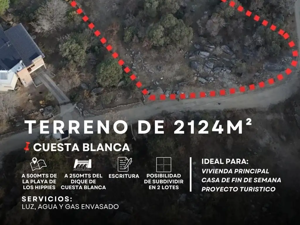 Ubicado a tan solo 250 m del Diquecito de Cuesta Blanca y 500 m de la Playa de los Hippies, este terreno es ideal para quienes buscan construir su vivienda principal, casa de fin de semana o incluso un proyecto turístico.