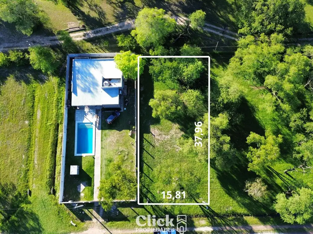 El terreno cuenta con 600 m2 (frente de 15,81 m y fondo de 37,96 m) y se encuentra en una zona rodeada de naturaleza, árboles autóctonos y acceso al Río Negro.