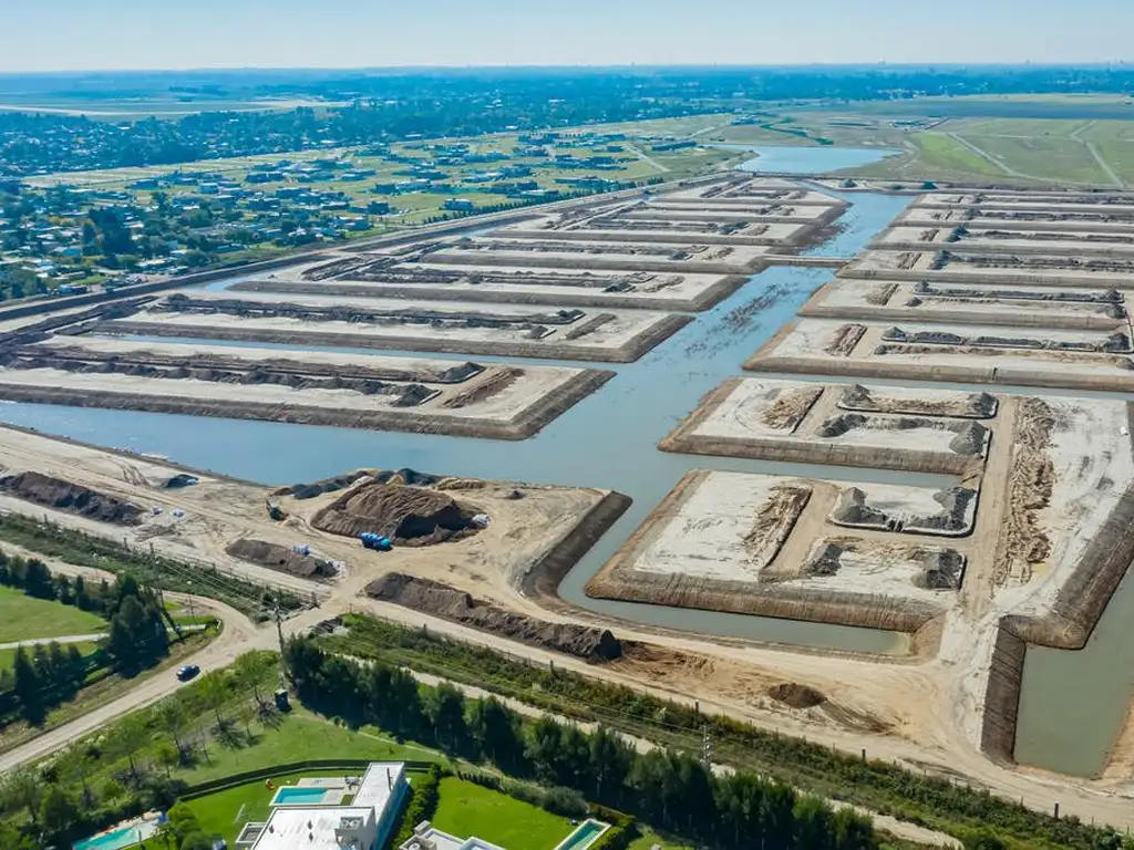 Posee un desarrollo urbano único en el que predominan canales de agua que recorren y conectan todo el barrio dando forma a ocho islas en las que todos sus lotes tienen acceso privado al agua.
