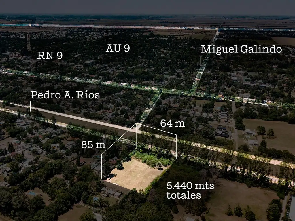 UNIDAD: Lote de 5440 m2 sobre calle Pedro A. Rios, a 50 metros de calle Galindo (próximo paso a nivel) y a tan solo 8 minutos del aeropuerto.