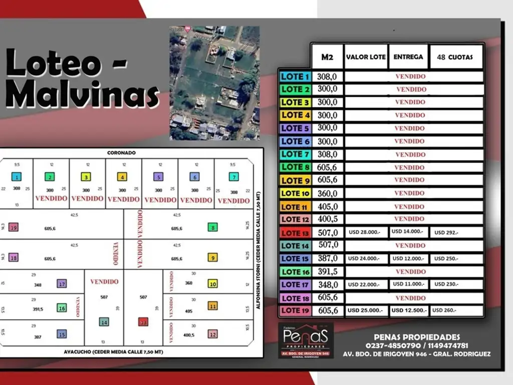 Loteo abierto a 3 cuadras de RUTA 5 Y a 400 mts de Estación Las Malvinas.