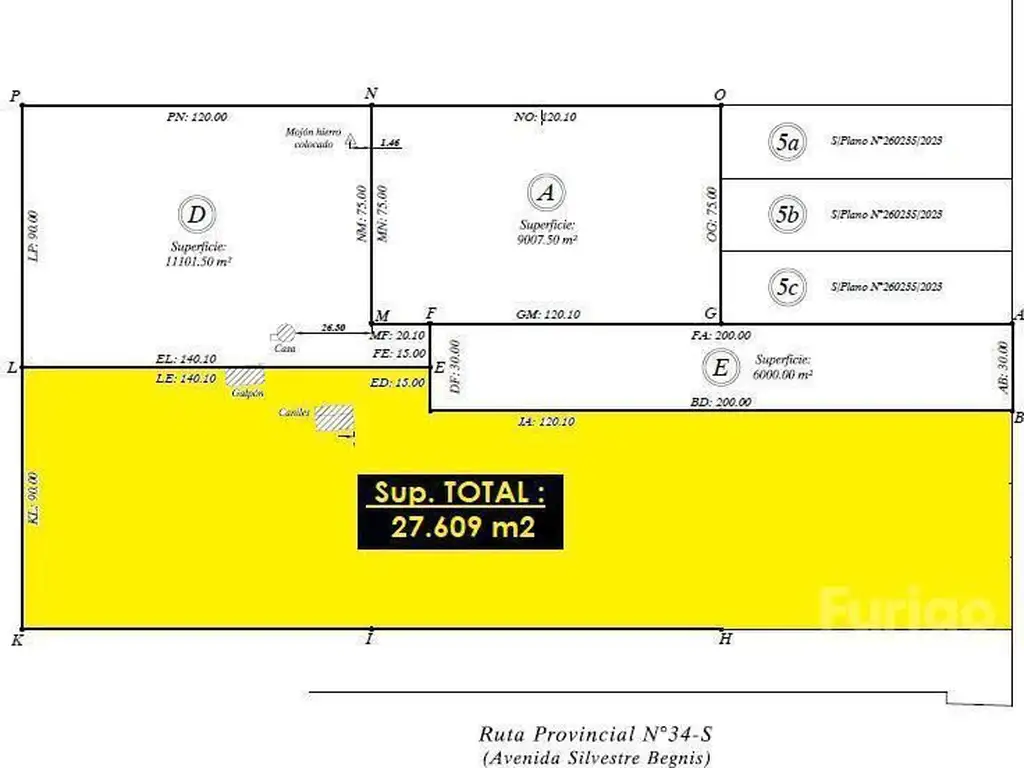 MEDIDAS: 75 metros de frente sobre Rene Favaloro por 340 metros de fondo.