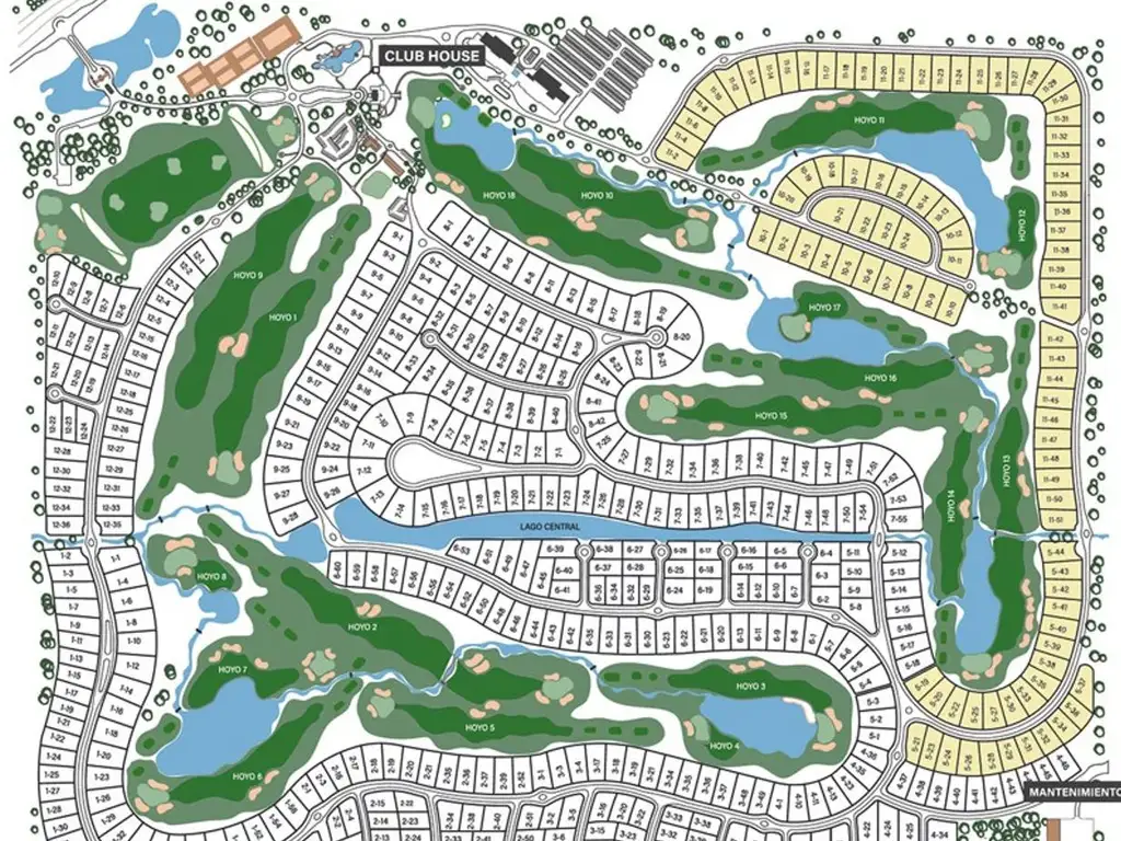 Los lotes del barrio varían entre los 900 y 2.500 m2, disfrutando de una vista abierta a los espacios verdes que ofrece el lugar, la cancha de golf es el corazón del barrio.