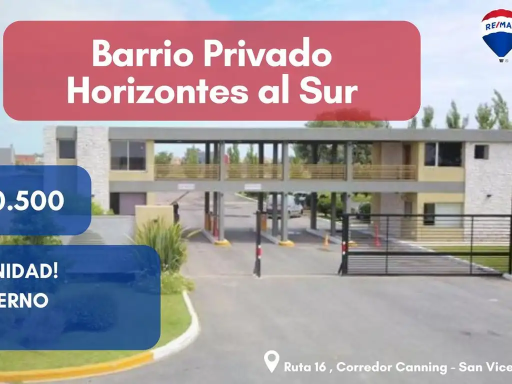 Horizontes al Sur desarrollado por Caputo Hermanos con el Sistema INCO. El proyecto se encuentra sobre la Ruta 16, a 1,500 metros de altura del km 14 de la Ruta 58, en el partido de Presidente Perón, entre las localidades de Canning y San Vicente. Se encuentra a solo 40 minutos del Obelisco y ofrece un rápido acceso a una amplia oferta comercial y educativa.