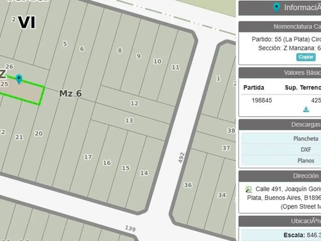 VENTA LOTE 425mts GORINA 491-138 Y 139 PARCELA 25