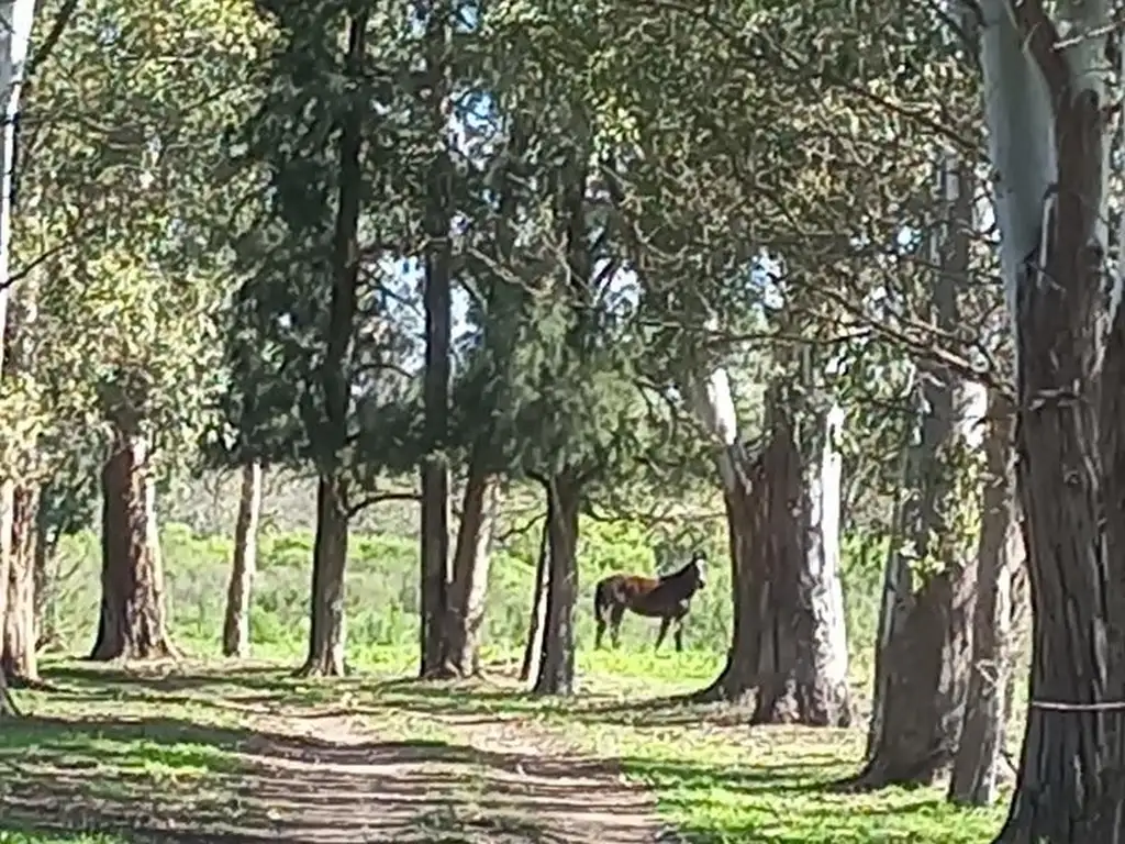 Dos montes de arboleda añeja, sirve de un perfecto reparo, atravesado por un arroyo con una entrada a la casa por camino arbolado rodeado de casuarinas.