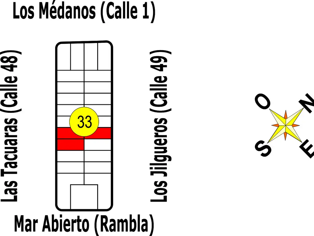 Ubicacion: Sobre Las Totoras (ex Calle 40) y lbre los Jilgueros (Calle 49) entre Los Médanos (ex Calle 1) y Mar Abierto (ex Rambla)