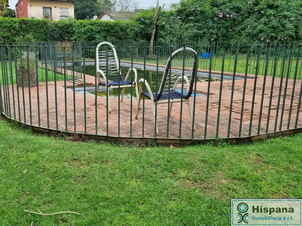 Cuenta con una hermosa pileta de material de 4 x 8 mts aprox escalonada, con borde de ladrillo y rejas a su alrededor. Posee filtro.