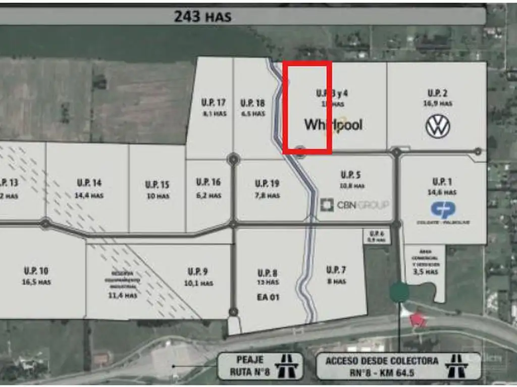 Polo Pilar. Ruta N8 (Panamericana Ramal Pilar) KM 64.50. Fracción de 243 hectáreas con acceso privilegiado a la ruta 8 y a la ruta 6. Este emprendimiento consolidado Logístico e Industrial se complementará con destinos comerciales.