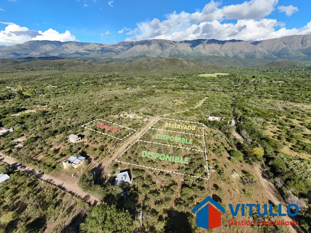 Lotes DESDE 2200 metros cuadrados con espectacular vista a las Sierras de Los Comechingones, agradable entorno y vegetación autóctona. Servicios de energía eléctrica y agua corriente de red y de perforación.