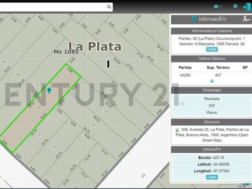 Lote UC3 en venta ubicado en la calle 25 entre 42 y 43.