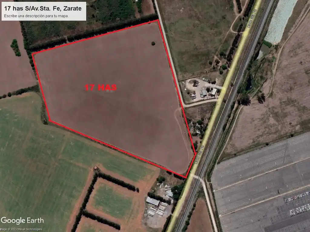 Se trata de una fracción de terreno con una superficie de 17 has con frente sobre Avenida Santa Fe, Ruta 038 Zarate - Lima, a 2.000 de Camino de ingreso al Parque industrial, a 4 km del Puerto Terminal Zárate y a 7 km de Panamericana km 90,500.