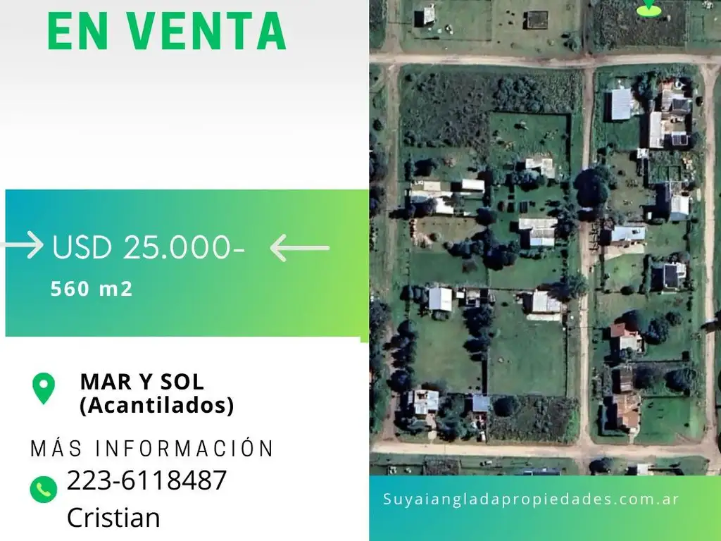 Terreno de 560mts² Mar y Sol. Acantilados. 700mts del m
