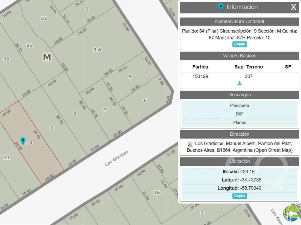 Se trata de seis lotes, de 307m2 cada uno. Dando un total de 1842 m2. Medidas: 30mx60m.