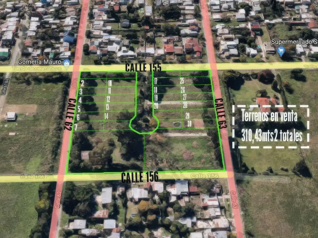 _ Terrenos en venta ubicados sobre calle 155 entre 62 y 63 (Los Hornos, La Plata, Buenos Aires) Con orientación norte y disposición frente.