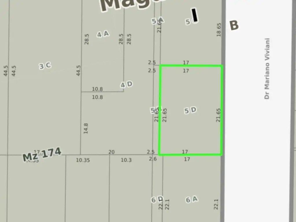 Lote estratégicamente ubicado en zona céntrica de Magdalena, provincia de Buenos Aires, con excelente potencial de desarrollo inmobiliario. Superficie total de 368 m² sobre calle Dr. Mariano Viviani, entre las intersecciones de San Martín y 25 de Mayo.
