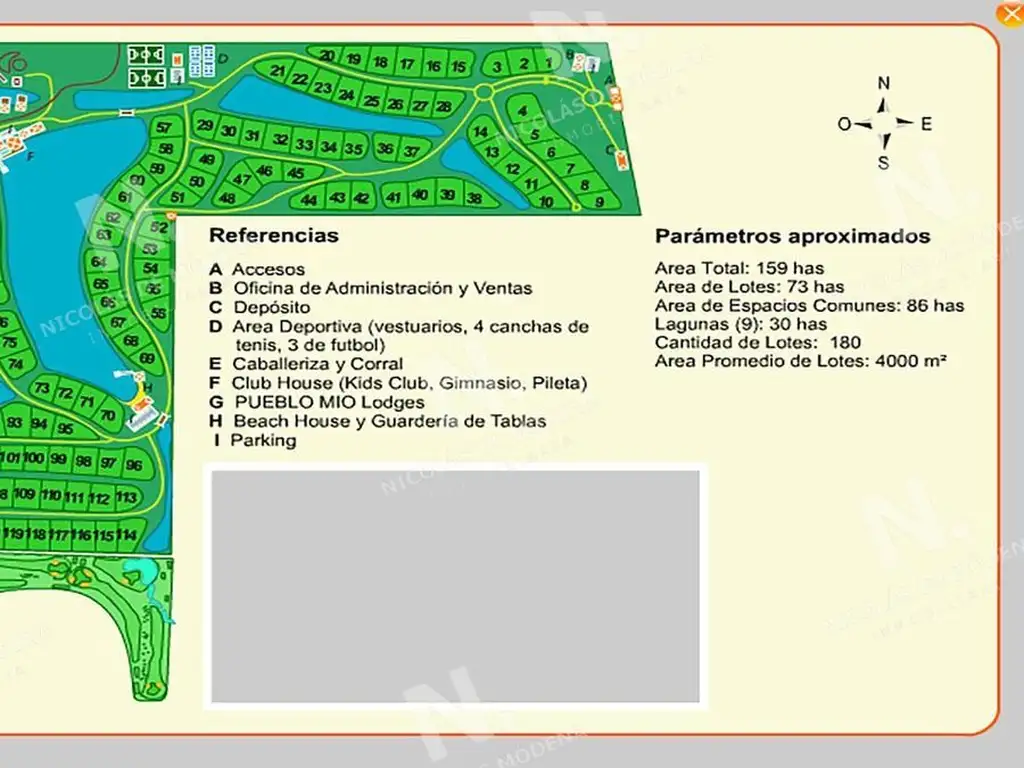 El diseño del barrio sobre 159 hectáreas, solamente utiliza 73has y 86has que son de espacios comunes y campo lo que prioriza el espacio, la tranquilidad, privacidad y conservar parte de la esencia del campo.