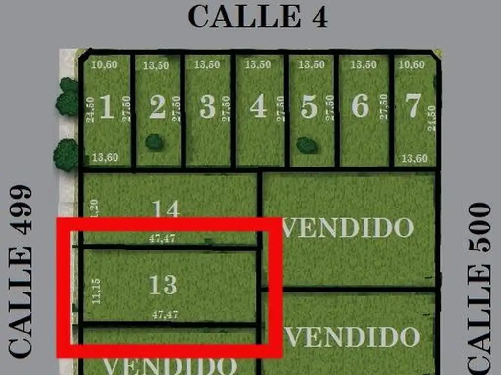 UF.13. Medidas: 11,15 x 47,47 mts. Sup. Total: 529,29 mts.