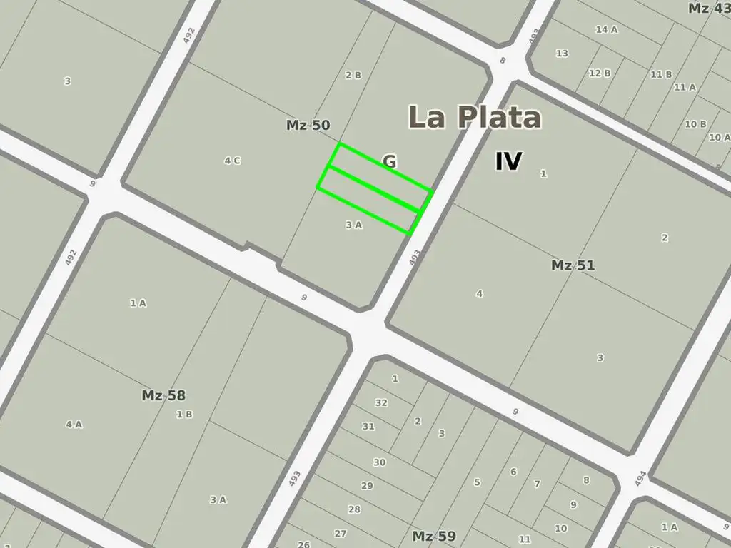 _ Terreno en PH en venta ubicado sobre calle 493 entre 8 y 9 (Villa Castells, La Plata, Buenos Aires) Con disposición frente y orientación al norte.