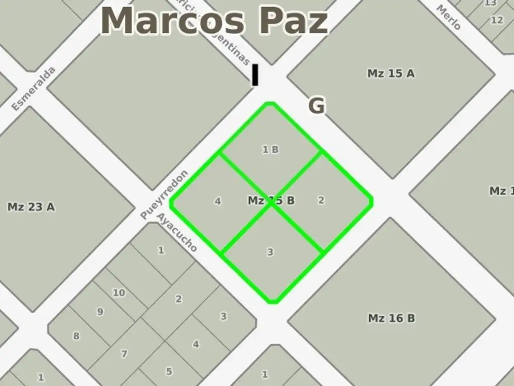4 fracciones de 1.870 m2, a 1 cuadra del asfalto con rapido acceso a ruta Nº 40 y a pocas cuadras del centro de Marcos Paz.(Zona Barrio cerrado La Renata)